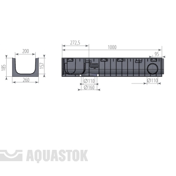 Лоток водоотводный пластиковый ЛВП NORMA DN200 H185