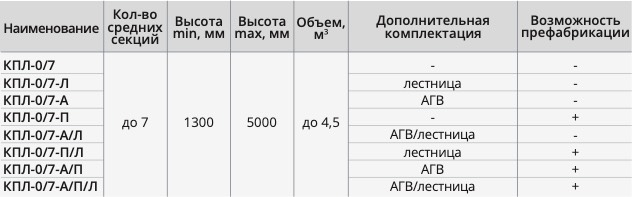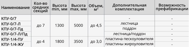 В зависимости от применения комплектуется лестницей, поддоном полимерным, пластинами пескоулавливающими/жироулавливающими, адаптерами герметичного ввода.