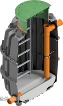 Колодец для сбора поверхностных дождевых и талых вод с территории и передачи их в ливневую канализацию. Комплектуется лестницей, адаптерами герметичного ввода. Возможен добор высоты за счет дополнительных средних секций.