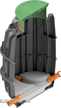 Обечайка регулируется по высоте в диапазоне 20 см для точной подгонки уровня крышки под уровень покрытия.