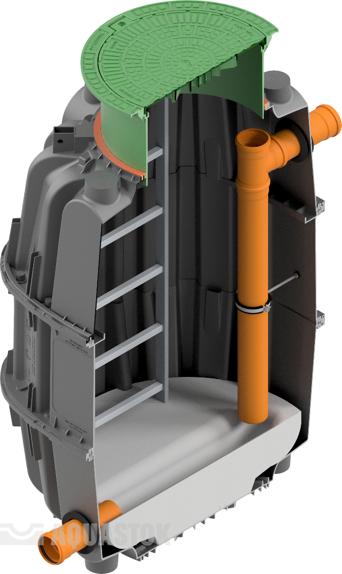 В зависимости от применения комплектуется лестницей, поддоном полимерным, пластинами пескоулавливающими/жироулавливающими, адаптерами герметичного ввода.