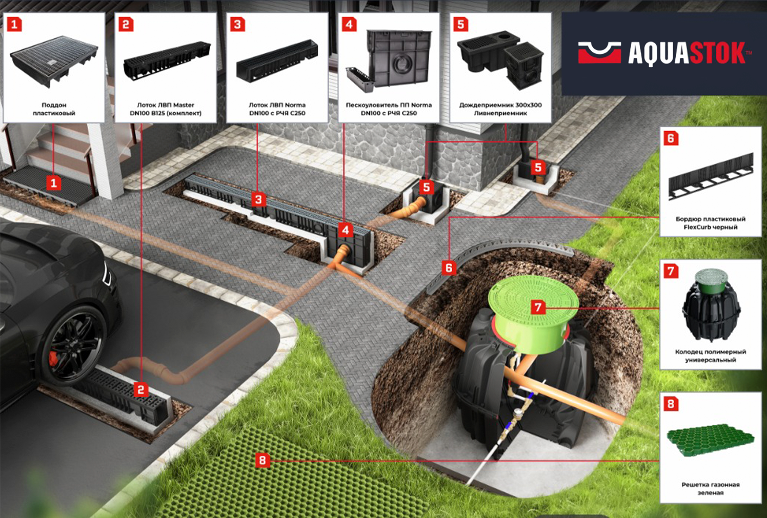 - Смотровой и ревизионный колодец: Обеспечивает доступ к подземным системам.